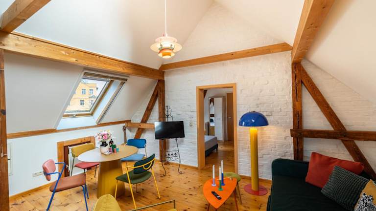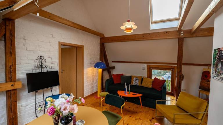 Das Romantische Retro Loft Caputh bei Potsdam bietet einen Blick auf den Garten und verfügt über moderne Übernachtungsmöglichkeiten in einer Ferienwohnung. Die Unterkunft bietet eine Terrasse, einen Garten und kostenloses WLAN in allen Bereichen. Es handelt sich um eine Nichtraucherunterkunft mit einem privaten Gastgeber.
