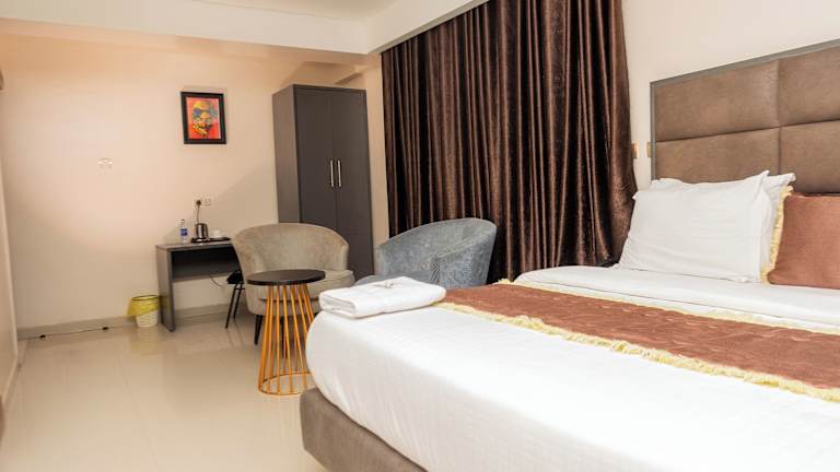Die Gästezimmer sind mit Klimaanlage, einem Flachbild-TV mit Satellitenkanälen, einem Kühlschrank, einem Wasserkocher und einem Schreibtisch ausgestattet. Jedes Zimmer verfügt über ein eigenes Badezimmer mit Dusche und kostenlosen Pflegeprodukten. Bettwäsche ist ebenfalls vorhanden.