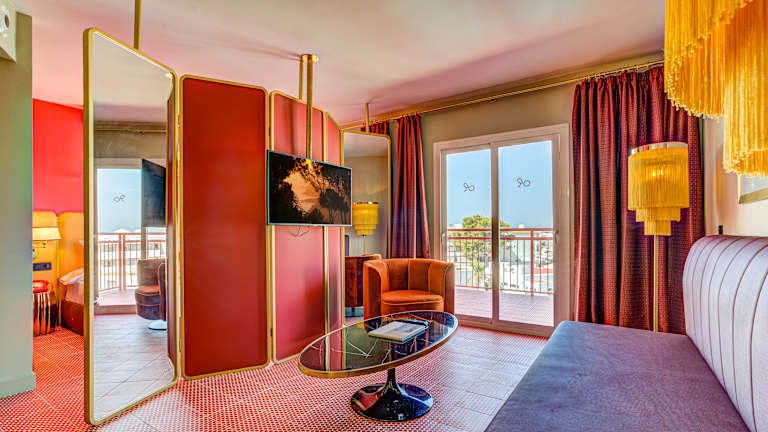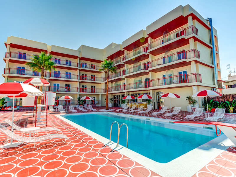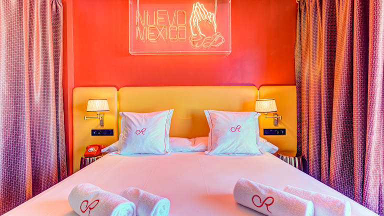 Das Hotel verfügt über 33 Zimmer, die im Hauptgebäude untergebracht sind. Die Zimmer sind komfortabel und bieten Poolblick. Zur Ausstattung gehören Klimaanlage, individuell regelbare Heizung, Safe, Deckenventilator, Fernseher, WLAN/WiFi, und ein eigenes Badezimmer mit Dusche und Haartrockner. Doppelzimmer: Dieses klimatisierte Doppelzimmer verfügt über einen Flachbildfernseher, ein eigenes Bad sowie einen Balkon mit Blick auf den Pool. Jedes der Zimmer ist nach einer Station der legendären Route 66 benannt, sodass sich die Gäste wie in einem authentischen amerikanischen Road-Motel fühlen, ergänzt durch das hervorragende Design, das das Markenzeichen der Hotels der Gruppe ist. Die Zimmer sind mit analogen Telefonen, Fringe-Lampen, Vintage-Ventilatoren, thematischer Neonbeleuchtung, einem Spiegel mit einer personalisierten Aufschrift über dem Bett und einer verführerischen Beleuchtung ausgestattet, die das gesamte Hotel in rotes Licht taucht. Darüber hinaus sind die Zimmer mit allen üblichen Elementen der Gruppe ausgestattet, wie einem Marshall-Lautsprecher und einem SMEG-Kühlschrank, diesmal in leidenschaftlichem Rot. Auf Anfrage und je nach Verfügbarkeit sind 2 Einzelbetten oder 1 Doppelbett verfügbar. Suite: Zimmer mit ca. 35 m² für bis zu 3 Personen, um Ihren Urlaub zu genießen. Diese klimatisierte Suite verfügt über einen Wohnbereich mit Schlafsofa, ein eigenes Bad sowie einen Balkon mit Poolblick oder eine Terrasse mit direktem Zugang zum Poolbereich. Jedes der Zimmer ist nach einer Station der legendären Route 66 benannt, sodass sich die Gäste wie in einem authentischen amerikanischen Road-Motel fühlen, ergänzt durch das hervorragende Design, das das Markenzeichen der Hotels der Gruppe ist. Die Zimmer sind mit analogen Telefonen, Fringe-Lampen, Vintage-Ventilatoren, thematischer Neonbeleuchtung, einem Spiegel mit einer personalisierten Aufschrift über dem Bett und einer verführerischen Beleuchtung ausgestattet, die das gesamte Hotel in rotes Licht taucht. Darüber hinaus sind die Zimmer mit allen üblichen Elementen der Gruppe ausgestattet, wie einem Marshall-Lautsprecher und einem SMEG-Kühlschrank, diesmal in leidenschaftlichem Rot. Auf Anfrage und je nach Verfügbarkeit sind 2 Einzelbetten oder 1 Doppelbett verfügbar. Die Suiten verfügen außerdem über 1 Schlafsofa, das den Gästen zur Verfügung steht.