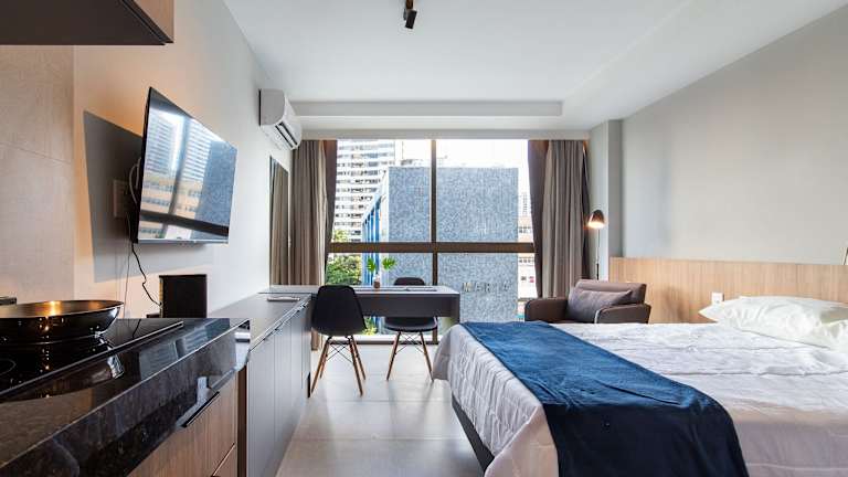 Rooftop.470 Recife by Carpediem bietet klimatisierte Übernachtungsmöglichkeiten und verfügt über kostenloses WLAN. Die Ausstattung umfasst einen Außenpool und eine Terrasse, die den Gästen zur Verfügung stehen. Es gibt auch eine Gemeinschaftslounge zur Entspannung.