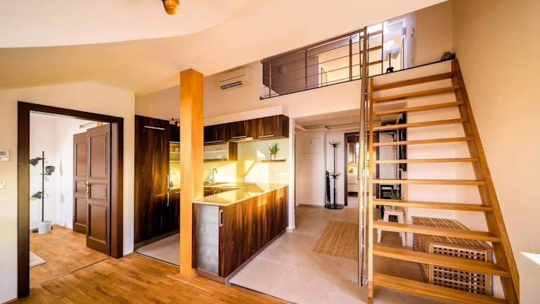 Das Rooftop Triplex Apartment in Centre bietet eine Terrasse mit Blick auf die Stadt und die Berge. Es handelt sich um eine Ferienwohnung mit einer Klimaanlage.