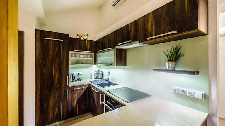 Die Ferienwohnung umfasst zwei Schlafzimmer, ein Wohnzimmer und eine voll ausgestattete Küche mit Kühlschrank und Kaffeemaschine. Ein Badezimmer mit Dusche und kostenlosen Pflegeprodukten ist ebenfalls vorhanden. Handtücher und Bettwäsche sind verfügbar.