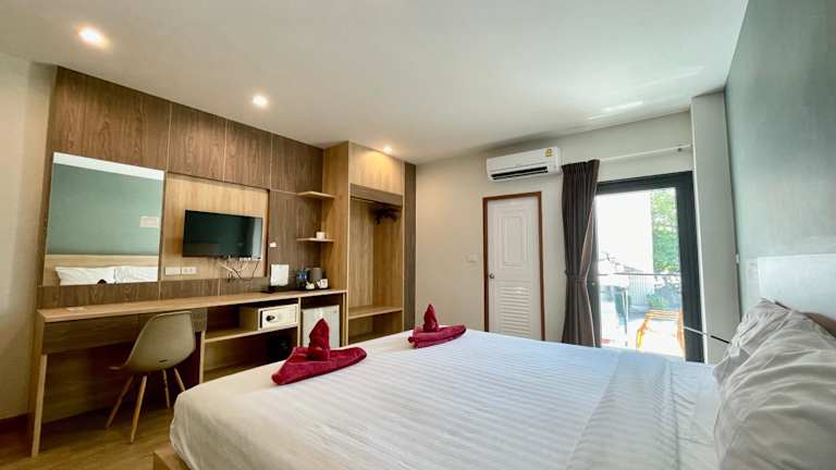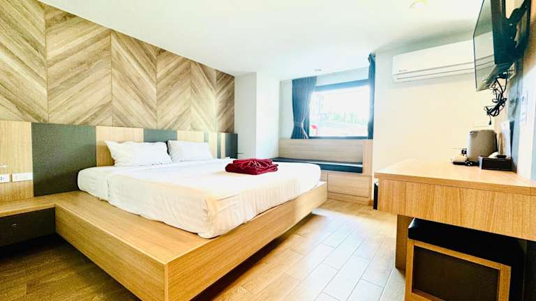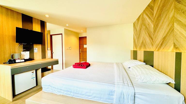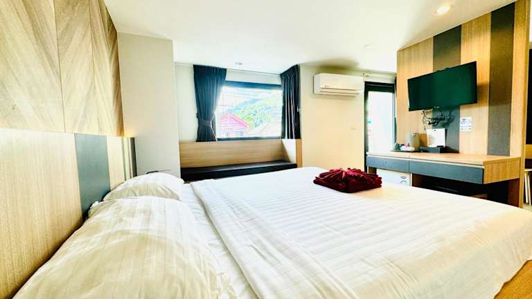 Das Hotel Room Actually in Strand Karon bietet minimalistisch möblierte Zimmer in zentraler Lage, nur 5 Gehminuten vom Sandstrand entfernt. Die klimatisierten Zimmer verfügen über kostenfreies WLAN, Kabel-TV und einen Kühlschrank. Einige Zimmer haben zudem einen Balkon. Die Unterkunft bietet kostenlose Parkplätze, einen Minimarkt und einen Souvenirladen. In der Umgebung finden Sie gastronomische Einrichtungen und Sehenswürdigkeiten wie das Phuket Simon Cabaret und den Freedom Beach.