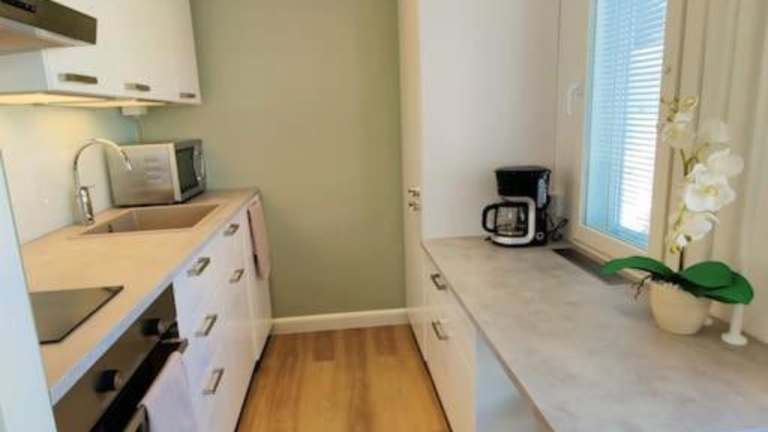 Die Ferienwohnung verfügt über 1 Schlafzimmer, einen Flachbild-TV mit Kabelkanälen und eine voll ausgestattete Küche, die mit einem Kühlschrank, Geschirrspüler, Waschmaschine, Ofen und Mikrowelle ausgestattet ist. Handtücher und Bettwäsche werden bereitgestellt.
