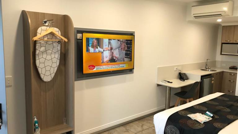 Room Motel Kingaroy East ist ein Motel, das Übernachtungsmöglichkeiten in einer einladenden Gemeinschaftslounge anbietet. Es ermöglicht den Gästen eine bequeme und angenehme Übernachtung.