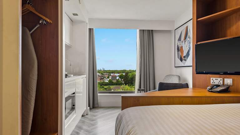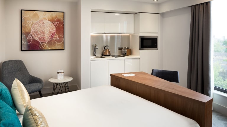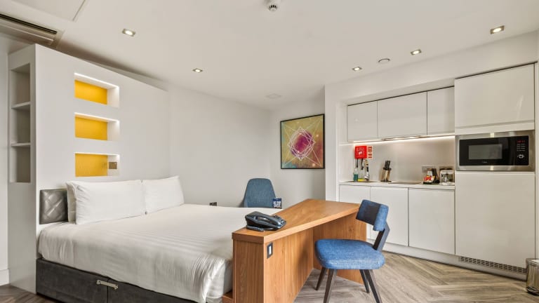 Die Studios im Roomzzz London Stratford sind komfortabel und modern eingerichtet. Jedes Studio verfügt über einen Sitzbereich mit einem Flachbild-TV und ein eigenes Bad mit Dusche. Eine Küchenzeile mit Mikrowelle, Toaster, Kühlschrank und Wasserkocher ist ebenfalls vorhanden, so dass Sie sich selbst versorgen können. Kostenloses WLAN steht Ihnen ebenfalls zur Verfügung.