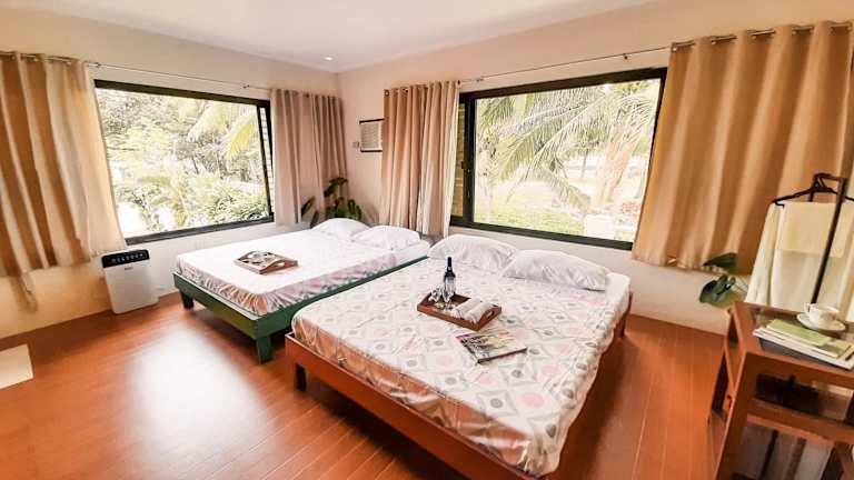 Das Rosal House - Beachfront for 12 Pax in Lemery Batangas bietet Annehmlichkeiten wie einen Garten, einen eigenen Strandbereich und eine Terrasse. Zudem stehen Grillmöglichkeiten und ein kostenloser Privatparkplatz zur Verfügung. Die Unterkunft stellt kostenfreies WLAN und einen herrlichen Meerblick zur Verfügung. Das Haus ist klimatisiert und eignet sich besonders für Familien oder Gruppen. Check-in ist zwischen 15:00 und 18:00 Uhr möglich, der Check-out ist von 08:00 bis 12:00 Uhr vorgesehen.