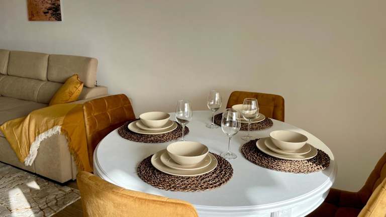 Die Ferienwohnung verfügt über 2 Schlafzimmer, ein Wohnzimmer und eine voll ausgestattete Küche mit Kühlschrank und Kaffeemaschine. Das Badezimmer ist mit einer Dusche und einem Haartrockner ausgestattet. Zur technischen Ausstattung gehören ein Flachbild-TV mit Kabelkanälen, ein Blu-ray-Player, ein DVD-Player und ein CD-Player.