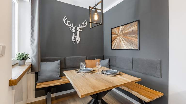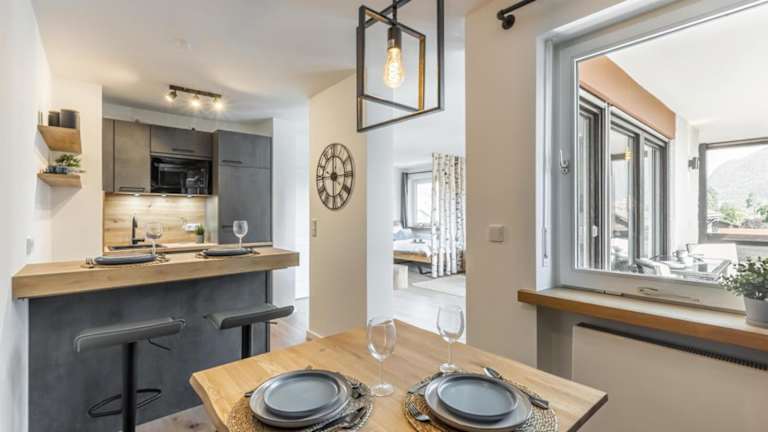 Die Ferienwohnung umfasst ein Schlafzimmer, ein Wohnzimmer, ein Badezimmer mit Dusche sowie eine gut ausgestattete Küche mit Kühlschrank und Geschirrspüler. Zur Ausstattung gehören Handtücher und Bettwäsche, ein Flachbild-TV sowie ein Balkon mit Bergblick.
