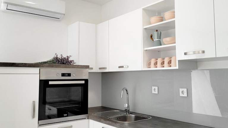Die klimatisierten Apartments im Rosemarie Beach Suite Zadar bieten alles, was Sie für einen angenehmen Aufenthalt benötigen. Jedes Apartment verfügt über einen Balkon mit Meerblick, auf dem Sie die frische Luft und den Blick auf das Meer genießen können. Der Wohnbereich ist gemütlich eingerichtet und verfügt über einen Flachbild-Sat-TV. Die voll ausgestattete Küche bietet einen Kühlschrank, einen Geschirrspüler, einen Backofen, ein Kochfeld, eine Kaffeemaschine und einen Wasserkocher. Das private Badezimmer ist mit einer Dusche und kostenlosen Pflegeprodukten ausgestattet. Kostenloses WLAN steht Ihnen in den Apartments zur Verfügung.