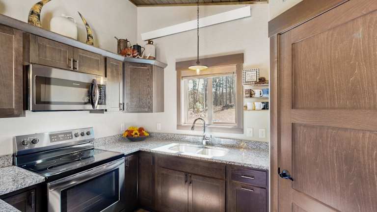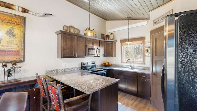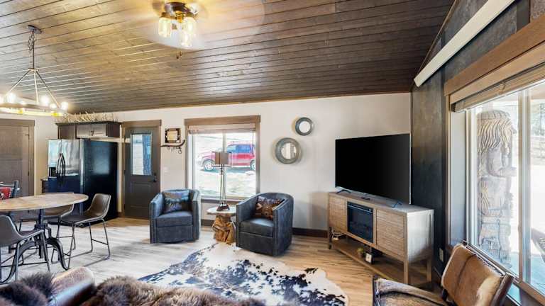 Das Rost Place Rambler in Sturgis, South Dakota, bietet eine gemütliche Unterkunft mit Bergblick und einer Terrasse. Das Ferienhaus verfügt über 2 Schlafzimmer, ein Wohnzimmer, eine voll ausgestattete Küche und ein Badezimmer mit Dusche und Whirlpool. Kostenloses WLAN ist im gesamten Ferienhaus verfügbar. Die Unterkunft befindet sich in der Nähe des Adams Museums und der nächste Flughafen ist der Regionalflughafen Rapid City, etwa 72 km entfernt.