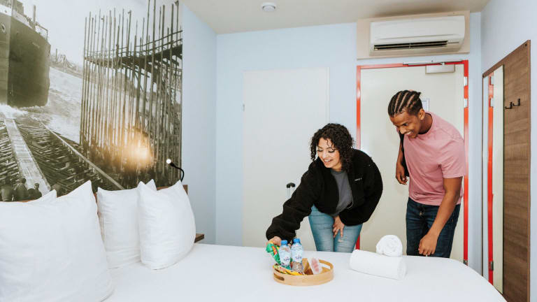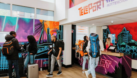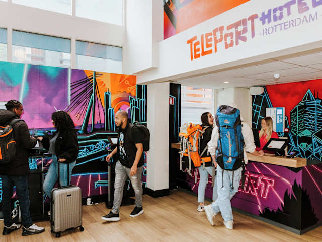 Das Rotterdam Teleport Hotel ist eine moderne Unterkunft in Rotterdam, die im Jahr 2018 eröffnet wurde. Die Zimmer sind komfortabel eingerichtet und verfügen über kostenfreies WLAN sowie ein eigenes Badezimmer. Das Hotel bietet auch eine Gemeinschaftslounge und ein Frühstücksbuffet. Die freundlichen Mitarbeiter an der Rezeption stehen Ihnen gerne mit Tipps und Empfehlungen für die Umgebung zur Verfügung.