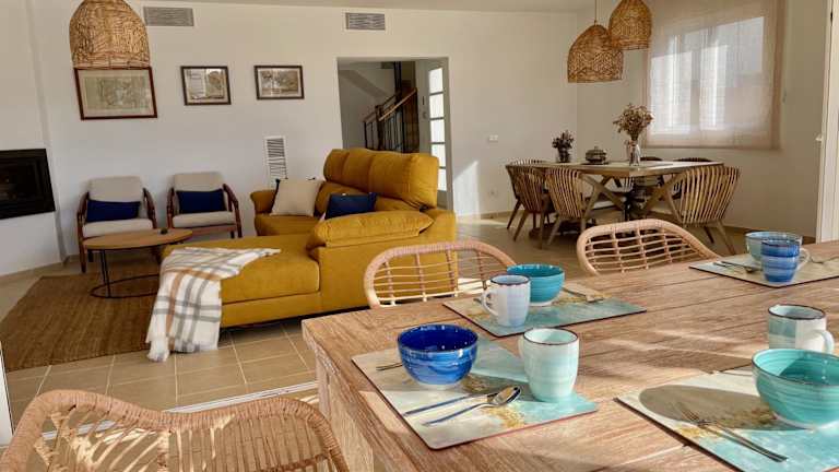 Die klimatisierte Villa verfügt über 5 geräumige Schlafzimmer, die Platz für eine große Familie oder eine Gruppe von Freunden bieten. Das Wohnzimmer ist komfortabel eingerichtet und lädt zum Entspannen ein. Die voll ausgestattete Küche bietet alles, was Sie für die Zubereitung von Mahlzeiten benötigen, einschließlich eines Kühlschranks und einer Kaffeemaschine. In den 3 Badezimmern finden Sie ein Bidet und eine Dusche. Handtücher und Bettwäsche werden gestellt, so dass Sie sich um nichts kümmern müssen.