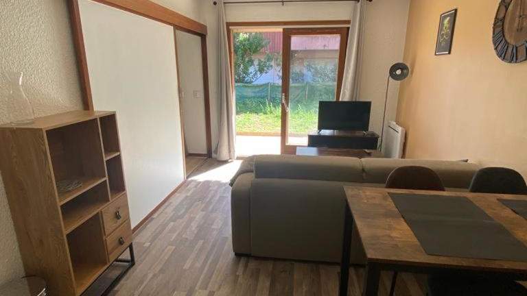 Die Ferienwohnung umfasst ein Schlafzimmer, ein Wohnzimmer und eine Terrasse, die einen angenehmen Ausblick bietet.