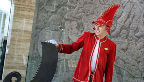 Das Royal Ambarrukmo Yogyakarta liegt in zentraler Lage in Yogyakarta, nur 10 Fahrminuten vom Flughafen Adisucipto entfernt. Das Hotel befindet sich auf demselben Grundstück wie das Ambarrukmo Museum und ist umgeben von Einkaufsmöglichkeiten und Restaurants. Die beliebte Jalan Malioboro und der Sultanspalast sind nur eine 20-minütige Fahrt vom Hotel entfernt.