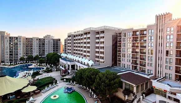 Das Hotel Royal Beach Premium befindet sich in einer erstklassigen Lage, nur 300 m vom Sonnenstrand entfernt. Hier erwartet Sie ein komfortables und modernes Hotel mit einer Vielzahl von Annehmlichkeiten. Genießen Sie die entspannte Atmosphäre, das ausgezeichnete Restaurant und die vielfältigen Freizeitmöglichkeiten wie das Spa- und Wellnesscenter, Tischtennis und Ausflüge in die Umgebung. Mit kostenfreiem WLAN und Privatparkplätzen bietet das Hotel alles, was Sie für einen angenehmen Aufenthalt benötigen. Entdecken Sie den Strand Sveti Vlas - West 2 und den Action AquaPark, die beide in der Nähe des Hotels liegen. Der Flughafen Burgas ist ebenfalls leicht zu erreichen.