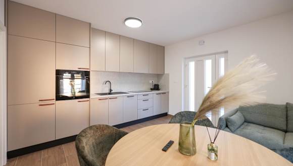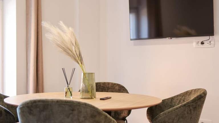 Die Ferienwohnung bietet ein Schlafzimmer, ein Wohnzimmer und eine vollständig ausgestattete Küche mit Kühlschrank und Kaffeemaschine. Das Badezimmer ist mit einer Dusche und einem Haartrockner ausgestattet. Handtücher und Bettwäsche werden bereitgestellt. Die Unterkunft ist klimatisiert und verfügt über schallisolierte Zimmer sowie allergikerfreundliche Optionen.