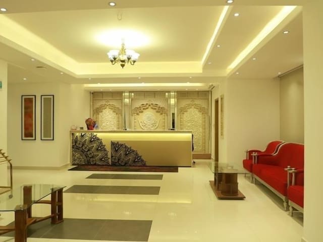 Das Royal Raj Hotel bietet Übernachtungsmöglichkeiten mit einem Fitnesscenter, einer Gemeinschaftslounge und einem Restaurant. Die Rezeption ist rund um die Uhr besetzt und es werden weitere Dienstleistungen wie Flughafentransfers und Zimmerservice angeboten.