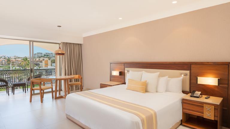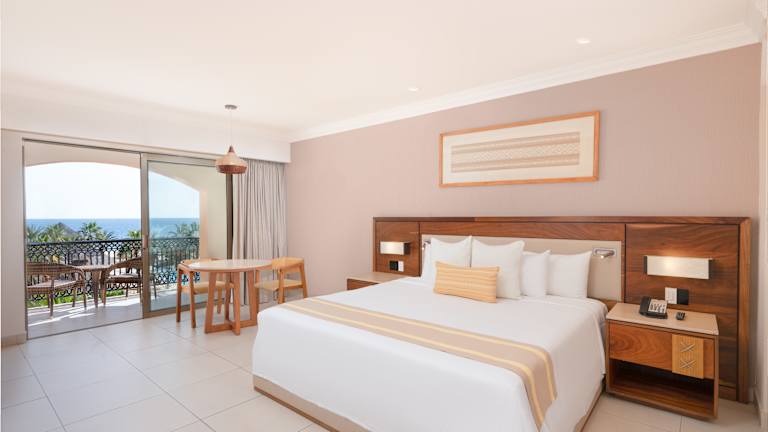 Erleben Sie das Royal Solaris Los Cabos in unseren komfortablen Zimmern, in denen sich Komfort mit einer atemberaubenden Aussicht auf das Paradies verbindet. Entspannen Sie auf Ihrem privaten Balkon und genießen Sie exklusive Annehmlichkeiten, eine Minibar und einen Safe. Die perfekte Auszeit erwartet Sie!
