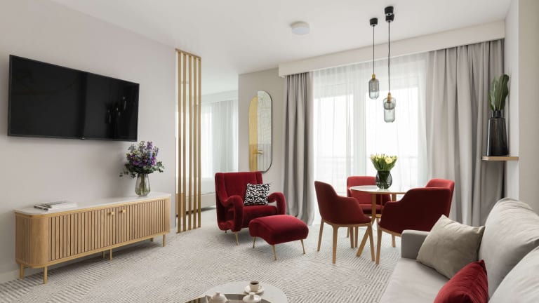 Buchen Sie die Royal Tulip Warsaw Apartments für einen komfortablen Aufenthalt in Warschau. Die Unterkunft bietet moderne Apartments mit voll ausgestatteter Küche und kostenfreiem WLAN. Freuen Sie sich auf ein Restaurant, kostenfreie Fahrräder, ein Fitnesscenter und einen Garten. Die zentrale Lage ermöglicht es Ihnen, die wichtigsten Sehenswürdigkeiten der Stadt bequem zu erreichen.