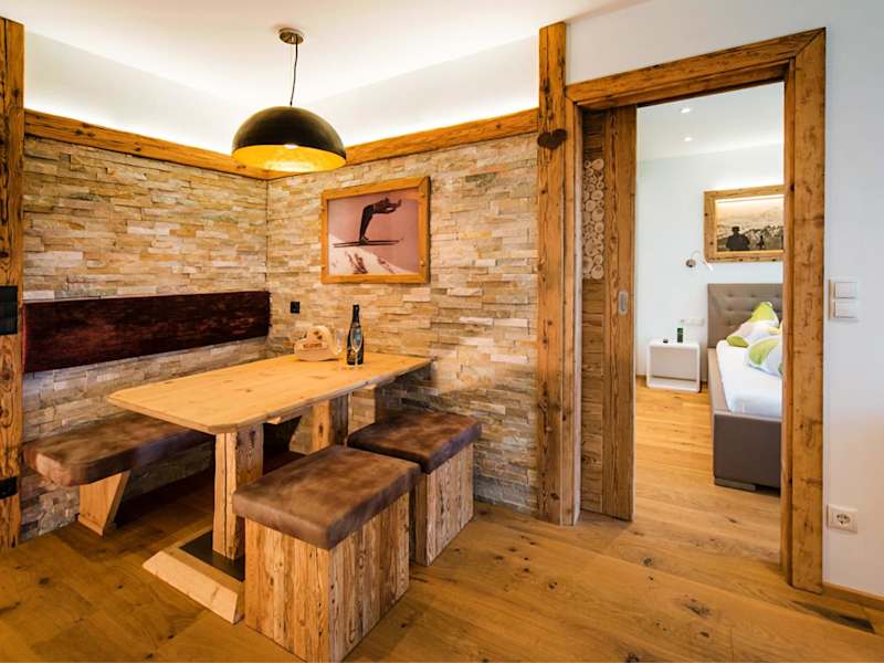 Das neu erbaute Apartment im Royal Waldfeld besticht durch seine luxuriöse Ausstattung und sein modernes Design. Der Balkon bietet einen herrlichen Blick auf die Berge und den Garten. Im Innenbereich erwartet Sie ein gemütlicher Sitzbereich mit einem TV sowie eine voll ausgestattete Designerküche mit einem Geschirrspüler und einem Essbereich. Die hochwertigen Parkettböden verleihen dem Apartment eine stilvolle Note, während das luxuriöse Badezimmer mit einer Badewanne, einer Dusche und einem WC mit einem Bidet für pure Entspannung sorgt. Alle Möbel im Apartment sind einzigartig und handgefertigt und schaffen eine authentische alpine Atmosphäre.