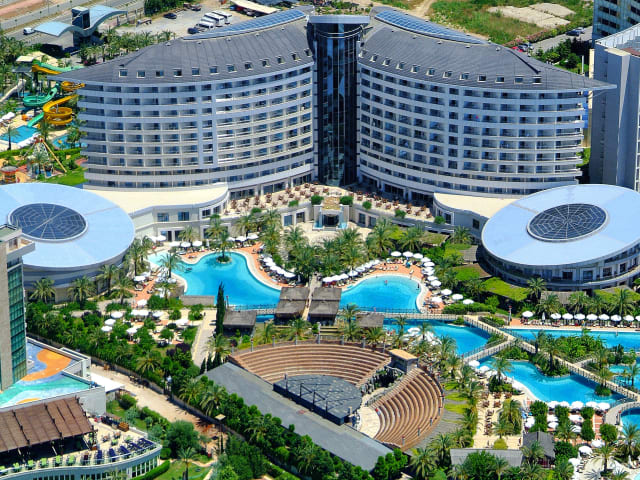 Das Hotel bietet ein All-inclusive-Verpflegungskonzept, das eine Vielzahl von gastronomischen Angeboten umfasst. Es gibt ein Hauptrestaurant mit internationalen und regionalen Buffets, sowie mehrere à la carte Restaurants, die italienische, asiatische, türkische und mediterrane Küche anbieten. Zudem stehen 10 Bars zur Verfügung, darunter eine Strandbar und eine Poolbar. Snack-Angebote und Kuchen sind ebenfalls in der All-inclusive-Verpflegung enthalten.