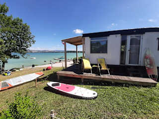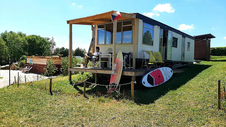 Die Unterkunft Rozkoš beach mobilheim bietet Übernachtungsmöglichkeiten mit Blick auf den See. Sie verfügt über Annehmlichkeiten wie einen Garten, eine Terrasse sowie eine Bar, die den Gästen zur Verfügung steht.