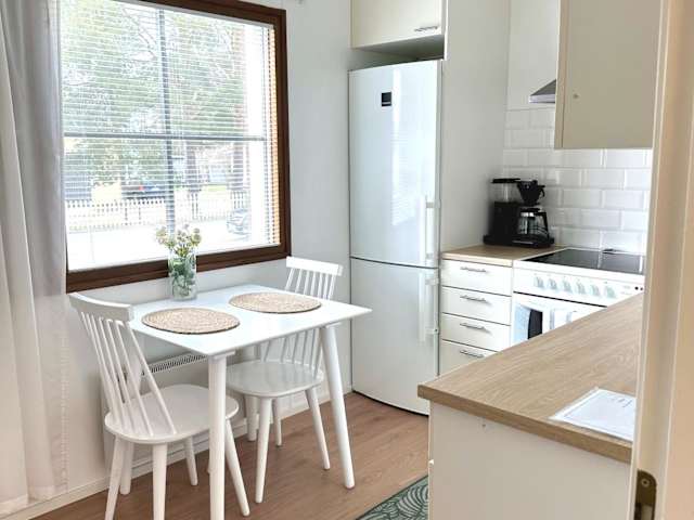 Die RT asunto, sauna, terassi ja autokatos ist eine klimatisierte Ferienwohnung, die über einen Garten und eine Terrasse verfügt. Die Gäste haben Zugang zu Privatparkplätzen und kostenlosem WLAN.