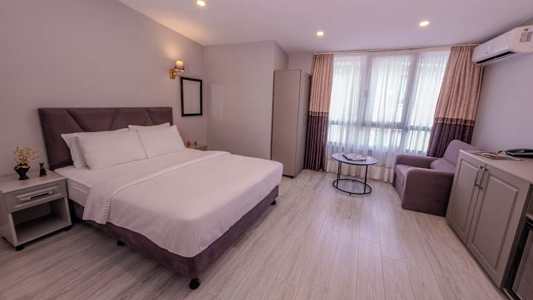 Die Zimmer sind mit einem Queensize-Bett oder einem Sofabett ausgestattet. Zustellbetten können auf Anfrage bereitgestellt werden. Zudem sind die Zimmer mit einem Telefon und kostenlosem WLAN ausgestattet. Jede Wohneinheit verfügt über ein eigenes Badezimmer mit Dusche und kostenlosen Pflegeprodukten. Einige Zimmer bieten einen Balkon mit Stadtblick. Das Hotel bietet Familien- und Nichtraucherzimmer an.