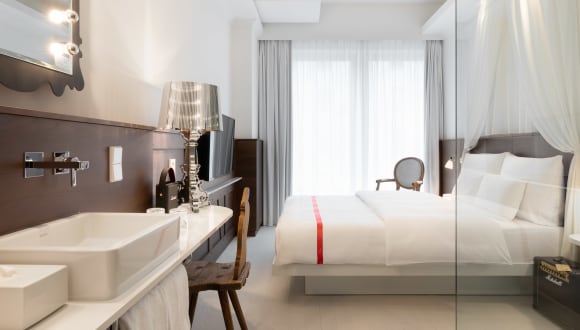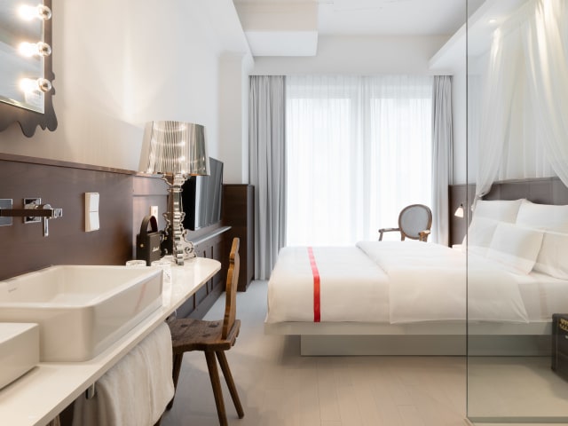Im Herzen Münchens verbindet Ruby Rosi historischen Charme mit modernem Design. Inspiriert von bayerischen Märchen und Theaterlegenden, spiegelt es die verspielte Seele der Stadt wider – opulente Stoffe, goldene Akzente und verschnörkelte Details treffen auf lässigen Komfort. Die Zimmer sind durchdacht gestaltet: extralange Betten, sanftes Licht und Glas-Regenduschen sorgen für entspannte Nächte. Schallisolierte Fenster und Verdunkelungsvorhänge bieten Ruhe mitten im Trubel der Stadt. In der rund um die Uhr geöffneten Bar entstehen Klassiker und Signature-Drinks in gemütlicher Atmosphäre. Wenn du lieber draußen entspannst, genieße eine Pause im Dachgarten über den Dächern von München. Musik und Kunst sind allgegenwärtig: E-Gitarren zum Ausleihen, Ruby Radio auf den Zimmern und regelmäßige Live-Sessions in der Bar machen den Aufenthalt besonders. Für einen entspannten Ausgleich sorgt der Yoga-Raum. Nur wenige Schritte vom Hauptbahnhof entfernt, bietet das Hotel den perfekten Ausgangspunkt für Streifzüge durch die Altstadt, zur Isar oder zum Oktoberfest. Ein inspirierender Rückzugsort mit Münchner Seele.