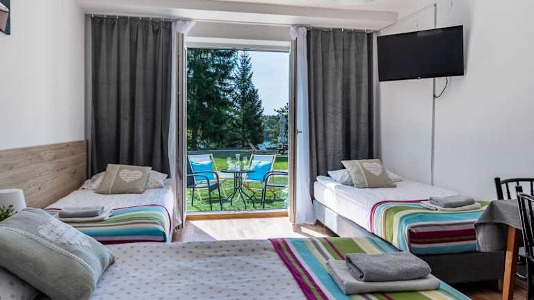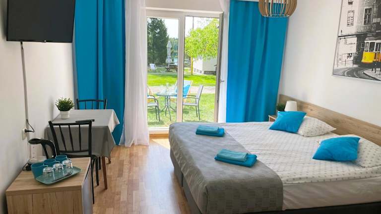 Das Hotel Ruciane Tarasy liegt in Ruciane-Nida, nur 25 km vom Wasserpark Tropikana entfernt. Die Unterkunft befindet sich inmitten einer malerischen Umgebung und bietet einen wunderschönen Blick auf die Natur. In der Nähe gibt es auch das Sailors' Village und das Rathaus von Mragowo, die beide einen Besuch wert sind. Der nächstgelegene Flughafen ist der Flughafen Olsztyn-Mazury, der ca. 63 km entfernt liegt.