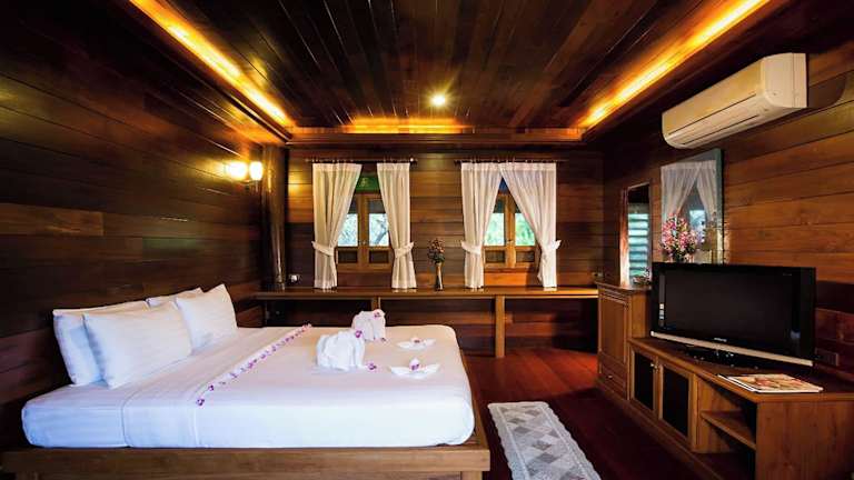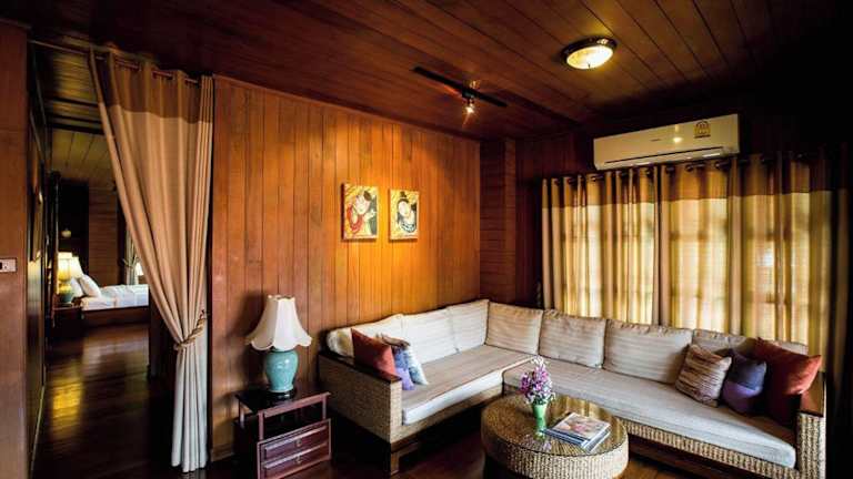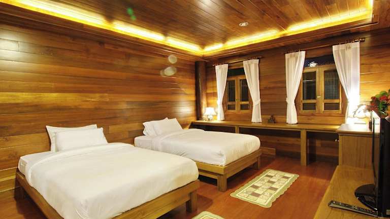 Das Hotel Ruen Come In ist ein charmantes Holzhaus im modernen Lanna-Stil und bietet eine ideale Lage in Chiang Mai. Die Zimmer sind mit schönen Holzmöbeln ausgestattet und verfügen über Annehmlichkeiten wie einen Flachbild-Kabel-TV, einen Kühlschrank und einen Safe. Im hoteleigenen Restaurant können Sie lokale Gerichte und Spezialitäten aus dem Norden Thailands genießen. Das Hotel bietet auch Thai-Kochkurse an. Die Lage des Hotels ermöglicht es den Gästen, die Sehenswürdigkeiten der Stadt bequem zu erkunden.