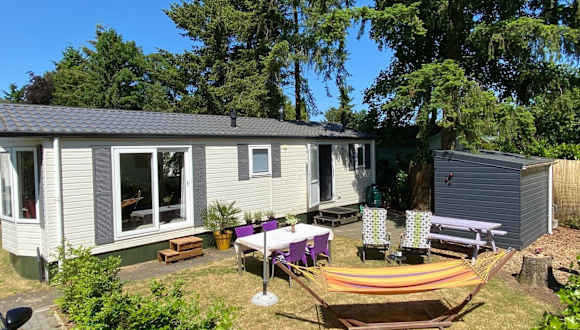 Das Ruim en modern chalet in de Veluwse bossen bietet Ihnen einen komfortablen Aufenthalt inmitten der wunderschönen Natur von Putten. Das Chalet verfügt über eine Terrasse, einen Garten und kostenfreies WLAN. Mit zwei Schlafzimmern, einem gemütlichen Wohnzimmer und einer gut ausgestatteten Küche bietet das Chalet alles, was Sie für einen erholsamen Urlaub benötigen. Die Umgebung lädt zu Aktivitäten wie Windsurfen und Radfahren ein. Entdecken Sie die nahe gelegenen Sehenswürdigkeiten wie das Huis Doorn und die Dinnershow Pandora. Der Flughafen Amsterdam Schiphol ist nur eine kurze Autofahrt entfernt.