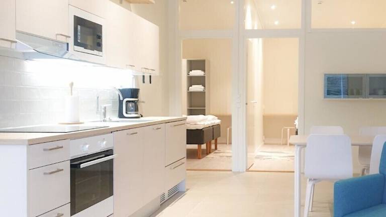 Die klimatisierten Apartments im Rukariutta bieten geräumige Unterkünfte mit 2 Schlafzimmern und einem Wohnzimmer. Jedes Apartment verfügt über einen Balkon, eine voll ausgestattete Küche, einen Essbereich und einen gemütlichen Kamin. Für zusätzlichen Komfort stehen ein Geschirrspüler und eine Waschmaschine zur Verfügung.