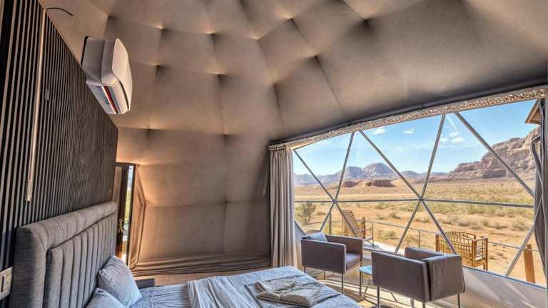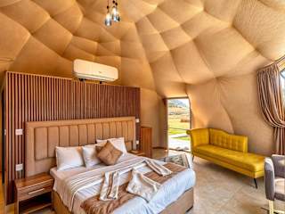 Das Red Desert Camp liegt in der beeindruckenden Wüstenlandschaft von Wadi Rum. Hier können Sie die Ruhe und Stille der Natur genießen und die atemberaubenden Aussichten auf die roten Sanddünen und Felsformationen erleben. In der Umgebung gibt es zahlreiche Möglichkeiten für Outdoor-Aktivitäten wie Wüstenwanderungen, Kamelreiten oder Jeep-Touren.