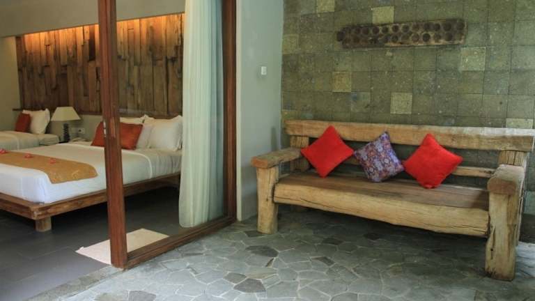 Die 20 Zimmer des Rumah Batu Boutique Hotels sind geschmackvoll eingerichtet und bieten eine Mischung aus traditionellen und modernen Elementen. Jedes Zimmer verfügt über eine Klimaanlage, einen Balkon mit Sitzbereich, einen Fernseher und ein eigenes Bad mit Dusche.