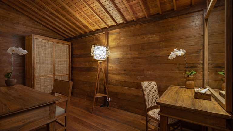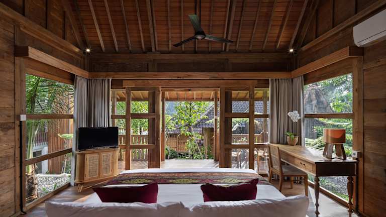 Das Rumah Kayu Resort befindet sich in einer ruhigen und ländlichen Umgebung, nur eine kurze Fahrt von den Sehenswürdigkeiten von Ubud entfernt. Die Umgebung bietet eine beeindruckende Naturkulisse mit einem nahegelegenen Wasserfall und ist ein idealer Ausgangspunkt für Wanderungen und Ausflüge in die Umgebung.