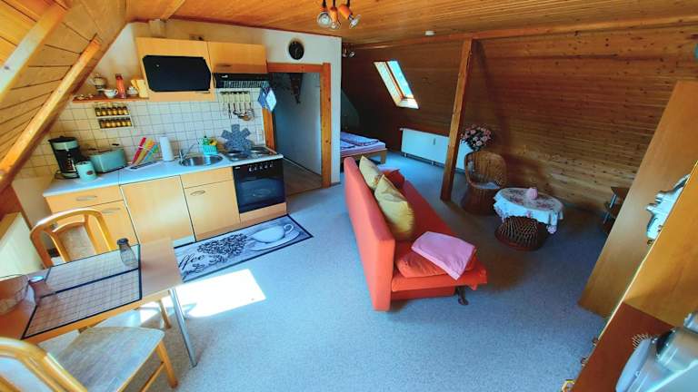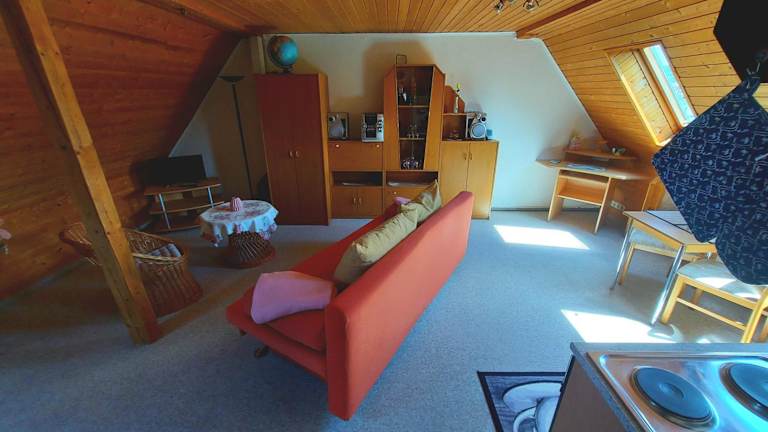 Die Ferienwohnung besteht aus einem Schlafzimmer, einem Wohnzimmer und einem Badezimmer mit Dusche und Haartrockner. Handtücher und Bettwäsche werden zur Verfügung gestellt.