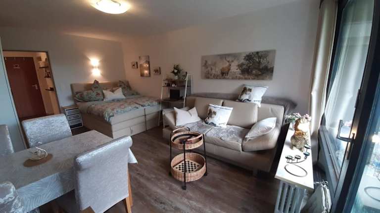 Die Ferienwohnung ist ausgestattet mit einer Küche, die einen Kühlschrank, Geschirrspüler, Ofen, Kaffeemaschine und Wasserkocher umfasst. Die Unterkunft besteht aus einem Wohnzimmer und einem Balkon, um den Aufenthalt angenehm zu gestalten.