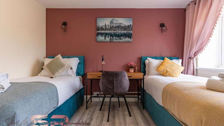 Rush House by SR Short Lets & Serviced Accommodation bietet Übernachtungsmöglichkeiten in einem 4 Schlafzimmer Ferienhaus. Die Unterkunft verfügt über einen Garten mit Gartenblick und kostenloses WLAN ist in der gesamten Unterkunft verfügbar.