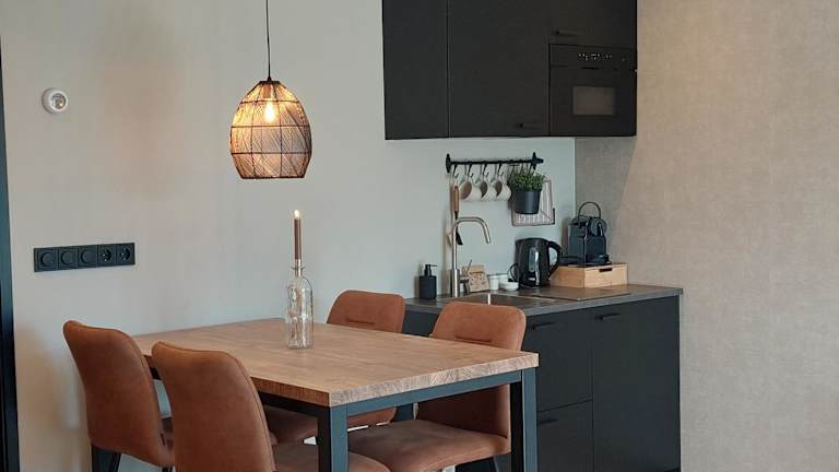 Die Küchenzeile der Unterkunft ist mit einem Kühlschrank und einer Mikrowelle ausgestattet. Außerdem stehen eine Kaffeemaschine und ein Wasserkocher zur Verfügung.