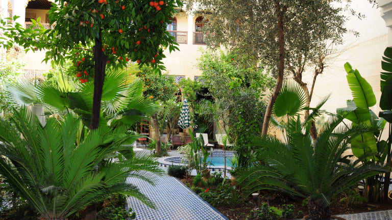Das Ryad Salama ist ein traditionelles Gästehaus mit einem Swimmingpool, eingebettet in einen von Bäumen gesäumten Garten mit einer Terrasse. Die Unterkunft bietet klimatisierte Zimmer, die mit marokkanischem Dekor, bunten Buntglasfenstern und Mosaiken ausgestattet sind. Jedes Zimmer verfügt über einen Balkon oder eine Terrasse mit Blick auf den Garten.