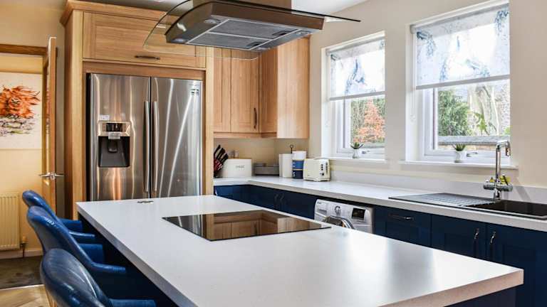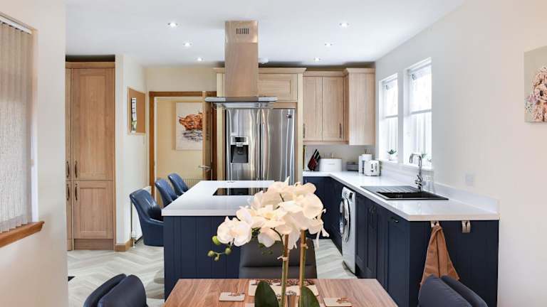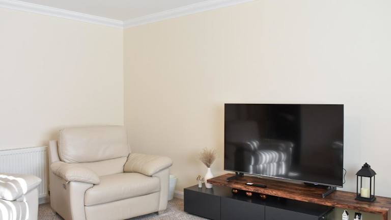 Das Ferienhaus Rycon verfügt über zwei Schlafzimmer. Die voll ausgestattete Küche bietet einen Geschirrspüler. Ein Fernseher ist ebenfalls vorhanden.