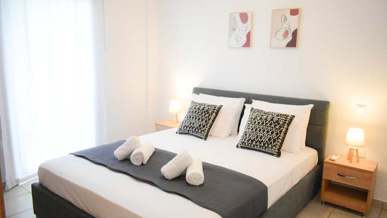 Die klimatisierten Apartments der S&G Luxury Apartments - Makri Gialos verfügen über 2 Schlafzimmer, ein Wohnzimmer und eine voll ausgestattete Küche mit Kühlschrank und Kaffeemaschine. Das Apartment bietet zudem ein Badezimmer mit Dusche und Haartrockner. Handtücher und Bettwäsche werden gestellt, sodass Sie sich um nichts kümmern müssen. Genießen Sie den Komfort und die Privatsphäre dieses Apartments während Ihres Aufenthalts.