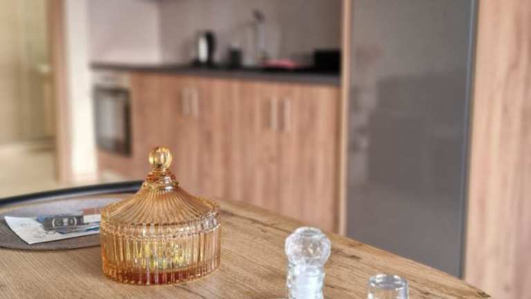 Die Ferienwohnung ist klimatisiert und umfasst ein Schlafzimmer, ein Wohnzimmer sowie eine voll ausgestattete Küche, die unter anderem mit einem Kühlschrank und einer Kaffeemaschine ausgestattet ist. Das Badezimmer ist mit einer Badewanne oder Dusche sowie einem Haartrockner eingerichtet. Handtücher und Bettwäsche sind ebenfalls verfügbar.