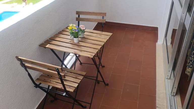 Die Ferienwohnung verfügt über einen Balkon, ein Schlafzimmer, ein Wohnzimmer sowie eine gut ausgestattete Küchenzeile.