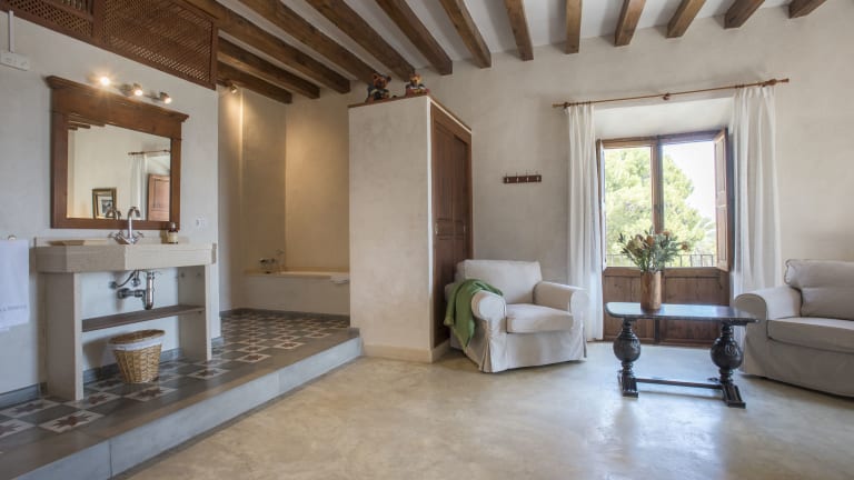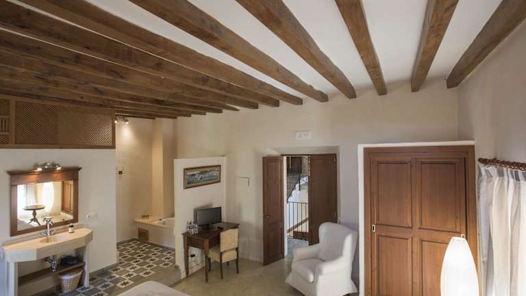 Das Sa Bisbal - Turismo de interior ist eine restaurierte Unterkunft aus dem 17. Jahrhundert, umgeben von mediterranen Gärten und bietet einen saisonalen Pool. Die Architektur harmoniert mit mallorquinischen und gotischen Stilelementen, erkennbar an den Steinmauern, Holzbalken und Bögen. Die Unterkunft zeichnet sich durch eine ruhige Atmosphäre und eine Vielzahl von Annehmlichkeiten aus, darunter kostenfreies WLAN und eine Sonnenterrasse.