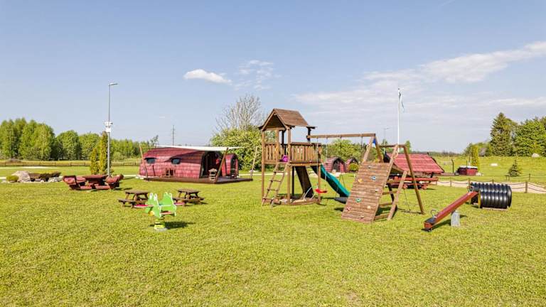 Der Campingplatz bietet einen Kinderspielplatz, auf dem sich die kleinen Gäste austoben können. Nach einem ereignisreichen Tag können Sie im Garten oder in der Gemeinschaftslounge entspannen.