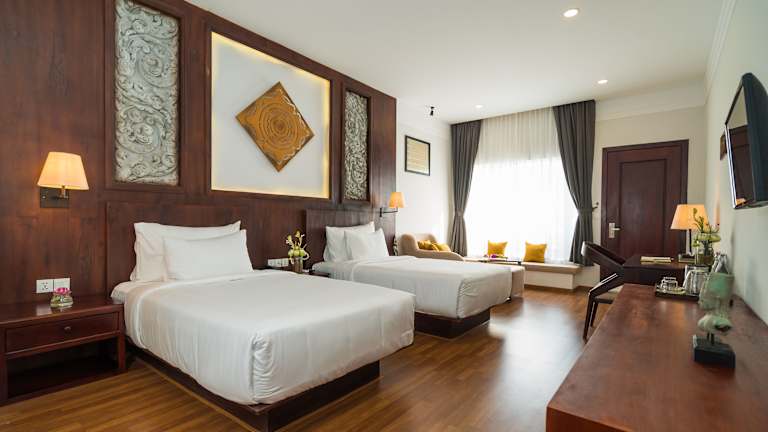 Alle Zimmer des Sabara Angkor Resort & Spa sind mit einem Flachbild-TV ausgestattet und bieten kostenfreies WLAN sowie ein eigenes Bad mit einem Haartrockner. Einige Zimmer verfügen über einen Blick auf den Pool und einen Sitzbereich.