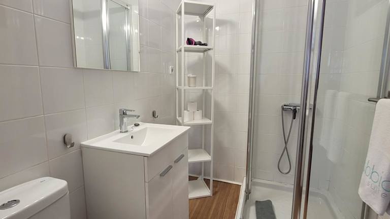 Die Ferienwohnung umfasst zwei Schlafzimmer, ein Wohnzimmer und eine voll ausgestattete Küchenzeile, die mit einem Kühlschrank und einer Kaffeemaschine ausgestattet ist. Ein Badezimmer mit Dusche und Haartrockner ist ebenfalls vorhanden. Handtücher und Bettwäsche werden bereitgestellt.